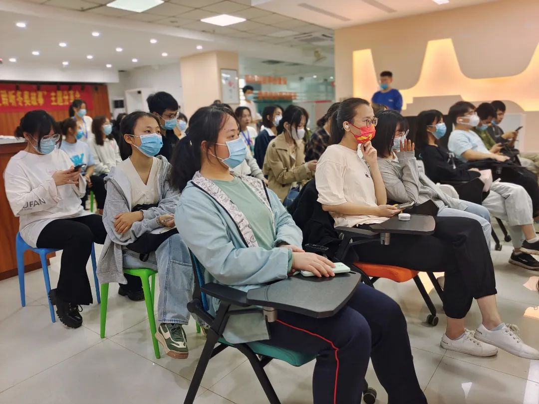 同学们在创新创业中心分会场也在认真聆听线上志愿者讲解,深受启发,收获满满。
