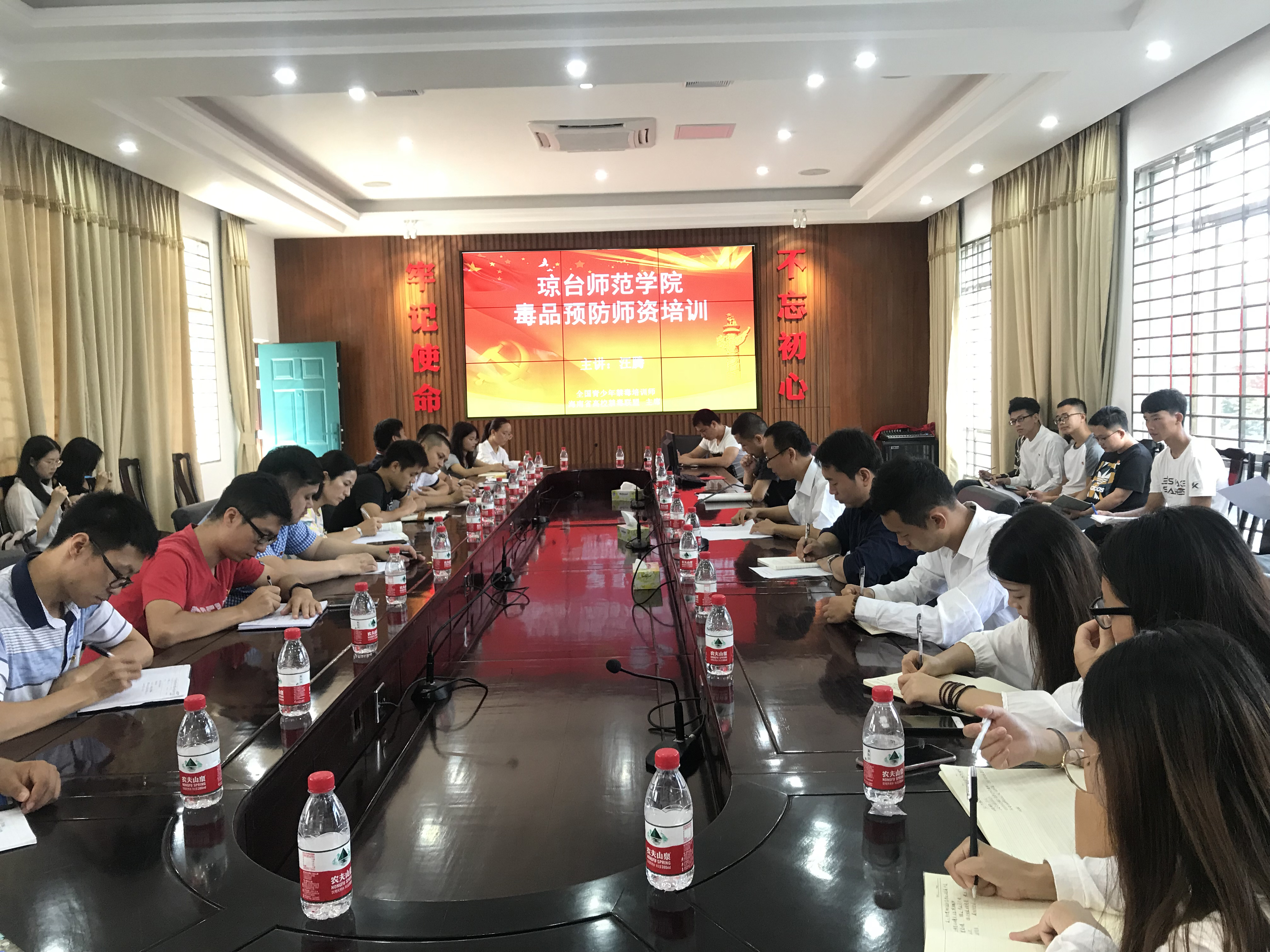 为全面推进我校青少年毒品预防教育“6.27”工程,加快我校青少年毒品预防教育专业化师资队伍建设,着力提高学校毒品预防教育水平,10月23日下午,我校团委在行政楼二楼会议举办2018年毒品预防教育师资培训班。海南省毒品预防教育讲师团讲师、校团委书记柳善文为学员们授课。校团委办公室主任李代主持培训课。团委全体人员、院系团总支书记、学生干部代表共30余人参加了此次培训。