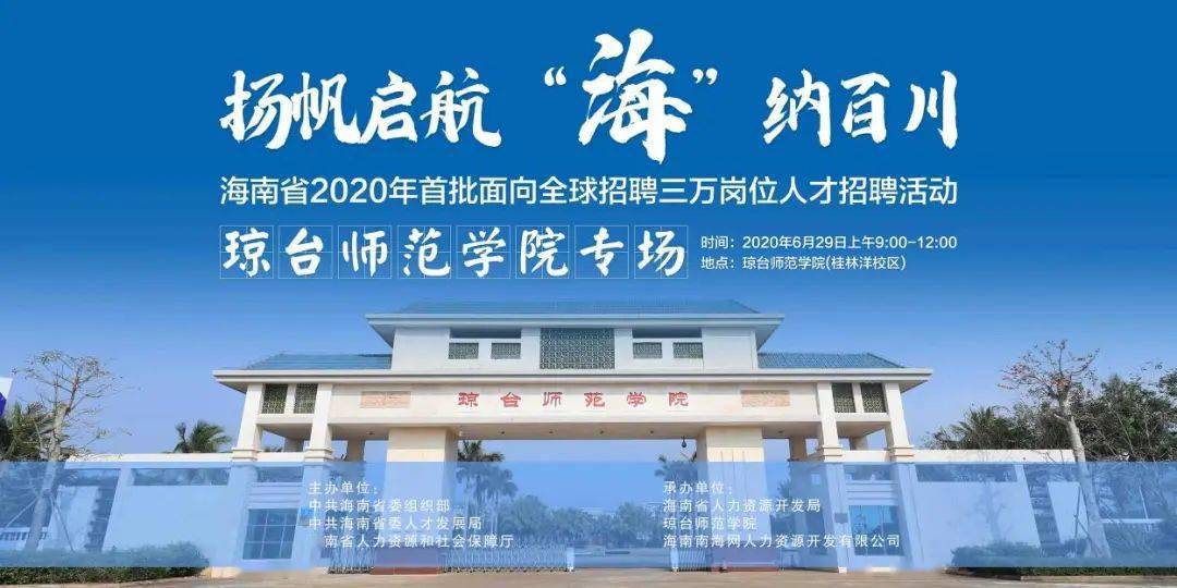 活动主题:扬帆启航 “海”纳百川——海南省2020年首批面向全球招聘三万岗位人才招聘活动琼台师范学院专场招聘会
