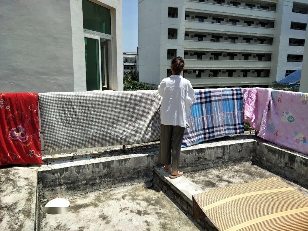 这个特殊的寒假,同学们离开校园四个多月,由于 疫情期间学生不能返校,学生宿舍变得让人牵挂起来,同学们担心宿舍里的衣服被子是否已经生霉了?花花草草是否存活?这不,在复学之际,琼台师范学院的辅导员老师和志愿者同学一起来为大家晒被子啦!