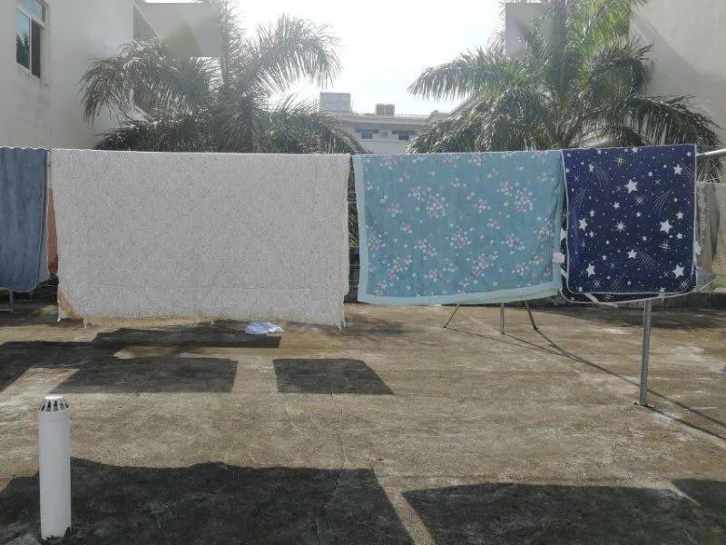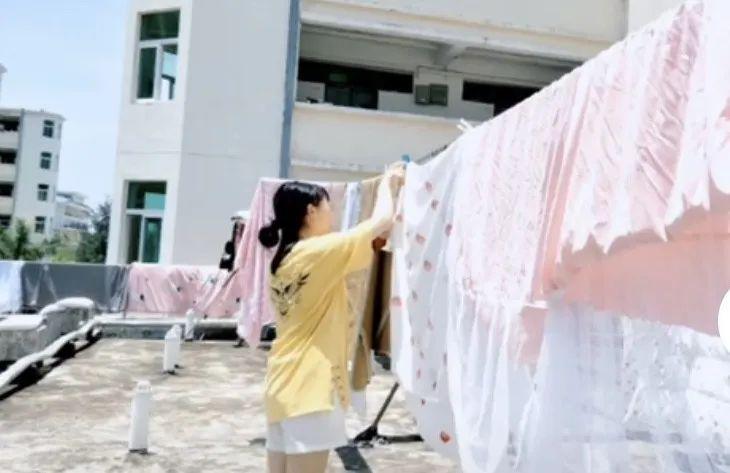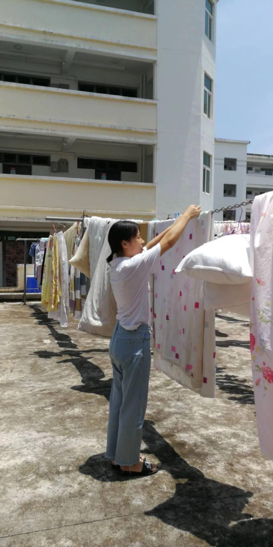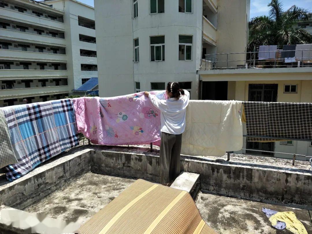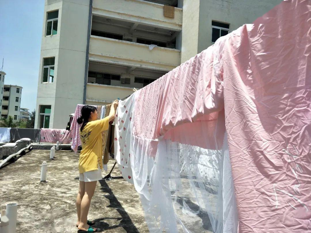 虽然最近天气开始热起来了,但还是阻挡不住同学们的热情,大家都干劲十足,把被子衣物都拿出来晒一晒,晒掉灰尘,晒掉霉气。还为寝室里有小植物的同学浇水打理,干的热火朝天。