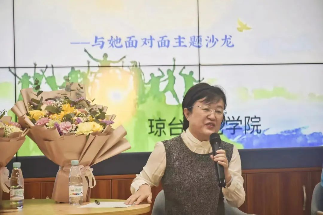 阳春三月,满枝迎春,“惊蛰”刚过,万物复苏。我们迎来了第113个三八国际劳动妇女节。2023年3月8日上午,在琼台师范学院桂林洋校区图书馆五楼创新创业中心举办了“我的青春在自贸”——与她面对面主题沙龙。本次沙龙活动为在校大学生传递了“她故事”、彰显了“她力量”、突出了“她价值”,并提供了一个可以面对面交流、学习、互鉴的机会,让在校大学生在活动中收获知识、增长见识、提高能力。本次沙龙邀请了学前教育学院副院长罗丽丹、学工办主任杨敏,马克思主义学院副院长钟婧,管理学院辅导员李丽莹四位老师担任访谈嘉宾,校园委副书记林文曼主持了本次沙龙活动。