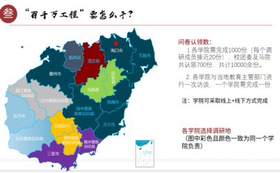 “百千万工程”大调研以助推教育事业发展为主轴,着眼于海南自贸港教育建设大局、教育事业发展大局和学校教师教育主业发展全局,聚焦问题导向,有效发挥学校作为海南师范之源和培育大量海南基础教育人才的资源禀赋,面向全校各二级学院组织1000名在校学生深入海南19个市县开展为期一个月的专题调研社会实践活动,共累计收集了9974份有效问卷,283份有效访谈。在充分整合有效问卷及访谈数据的基础上,多维度强化结果运用,寻找破解海南基础教育困局的路径。