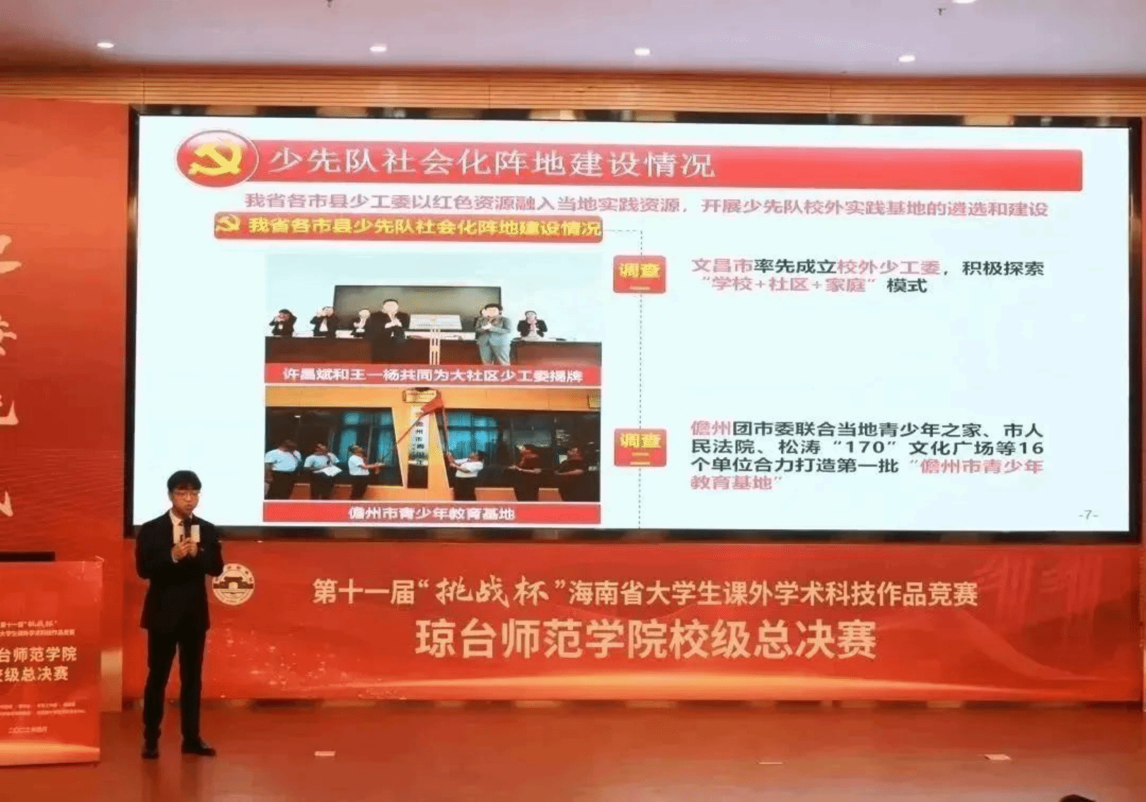 校团委以“挑战杯”为抓手,坚持做好聚焦主责主业,强化实践育人,引领琼台学子投身科技创新的时代浪潮,为实现中华民族伟大复兴的中国梦、海南自贸港建设贡献青春力量。