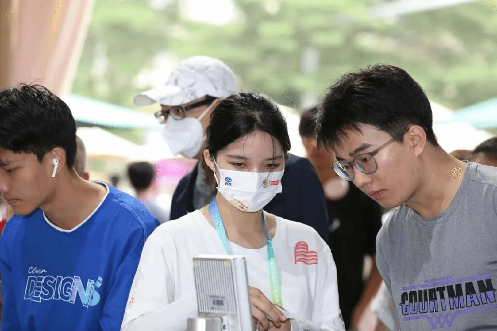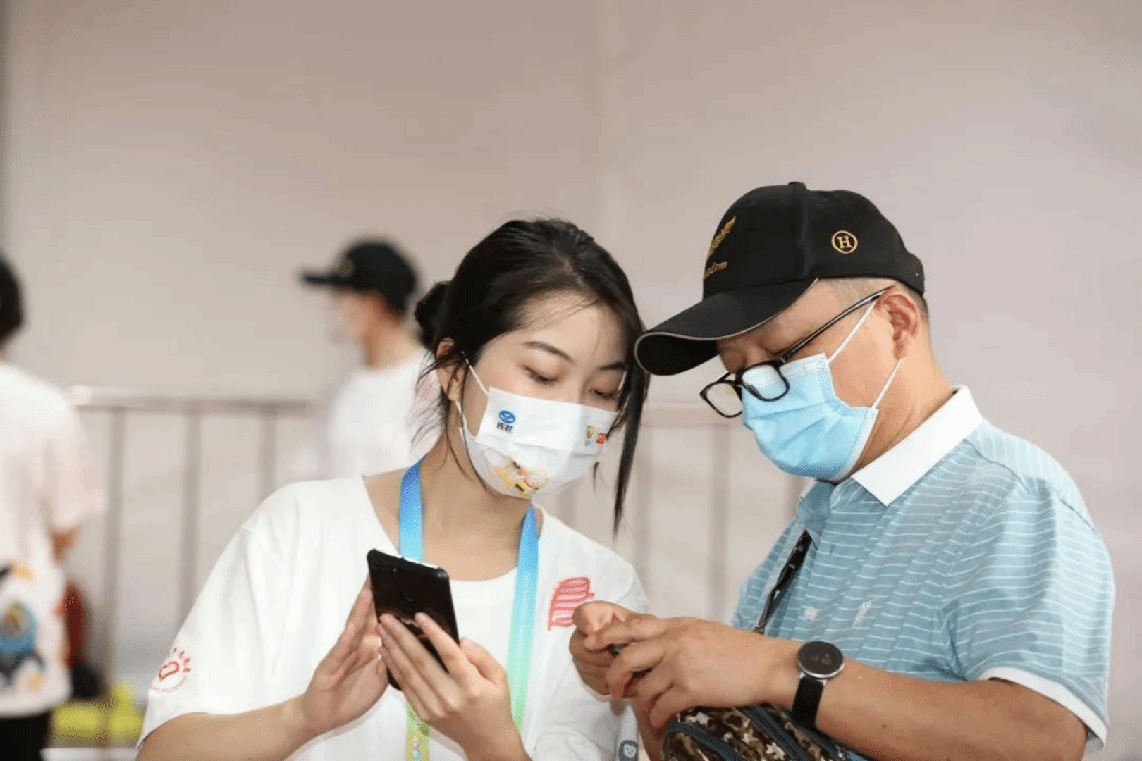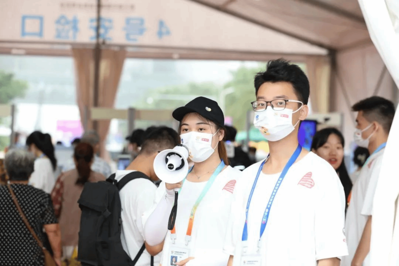 证件门禁组的“小椰青”们来到岗位上严阵以待,面对着不断涌进来的观众,他们依旧有条不紊,认真检查来宾证件,引导来宾通过RFID射屏门与闸机,以乐观服务的精神状态去迎接这一天的志愿工作。