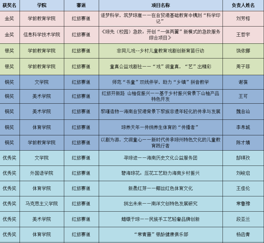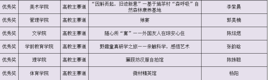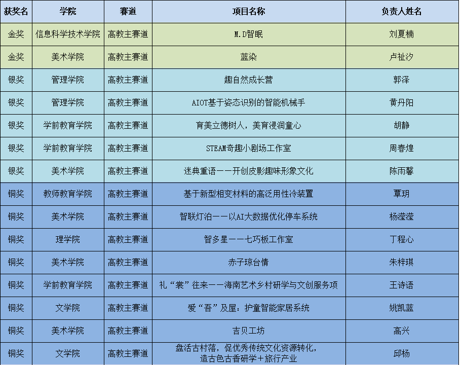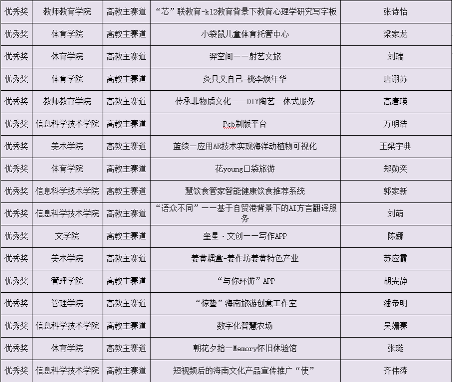第九届中国国际“互联网+”琼台师范学院大学生创新创业大赛获奖项目名单