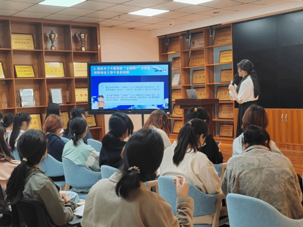 活动中,主持人播放的两个视频让同学们进一步认识到“互联网+创新创业大赛”的组织形式和重要性。