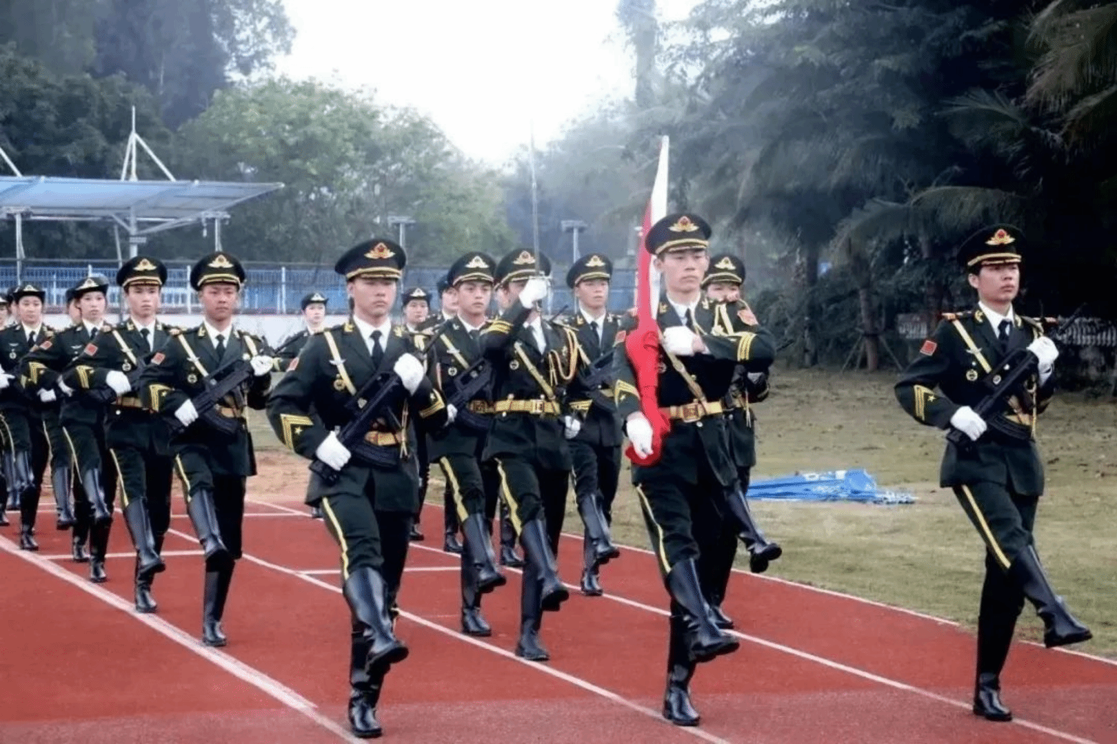 清晨,升国旗仪式正式开始。迎着朝阳,国旗护卫队身着戎装,昂首挺胸,迈着整齐划一、铿锵有力的步伐护送五星红旗走向升旗台。伴随着《义勇军进行曲》激昂的旋律,全体师生庄严肃立,向国旗行注目礼,用高亢嘹亮的国歌抒发爱党爱国之情,并注视着五星红旗在晨风中冉冉升起,在熠熠晨光中迎风飘扬。