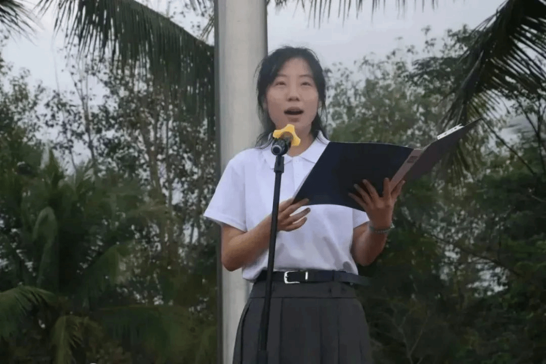 升旗完毕后,来自外国语学院2022英语1班的韩欣儒同学进行了题为“胸怀天下,报效祖国”的国旗下演讲。她陈述了胸怀天下、报效祖国的重要性,并鼓励同学们在不断学习、成长的过程中,积极拓展自己的视野,关注全球事务,提升自身的综合素质。同时,她还呼吁同学们要时刻保持一颗感恩的心,不忘初心,牢记使命,为祖国的繁荣发展贡献自己的力量。
