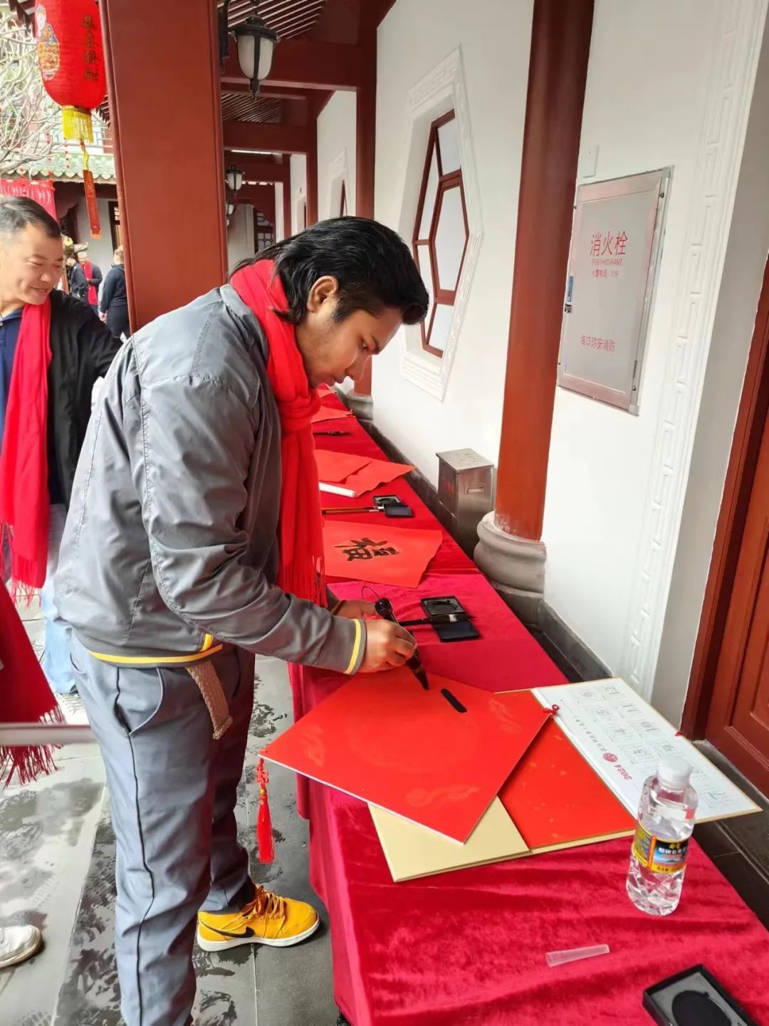 一位来自乌兹别克斯坦籍学生喜悦开心地说:“这是我第三次参加‘书院过大年’活动了,每一年都有新的惊喜,今年穿着汉服写汉字,是一次特别的体验!”