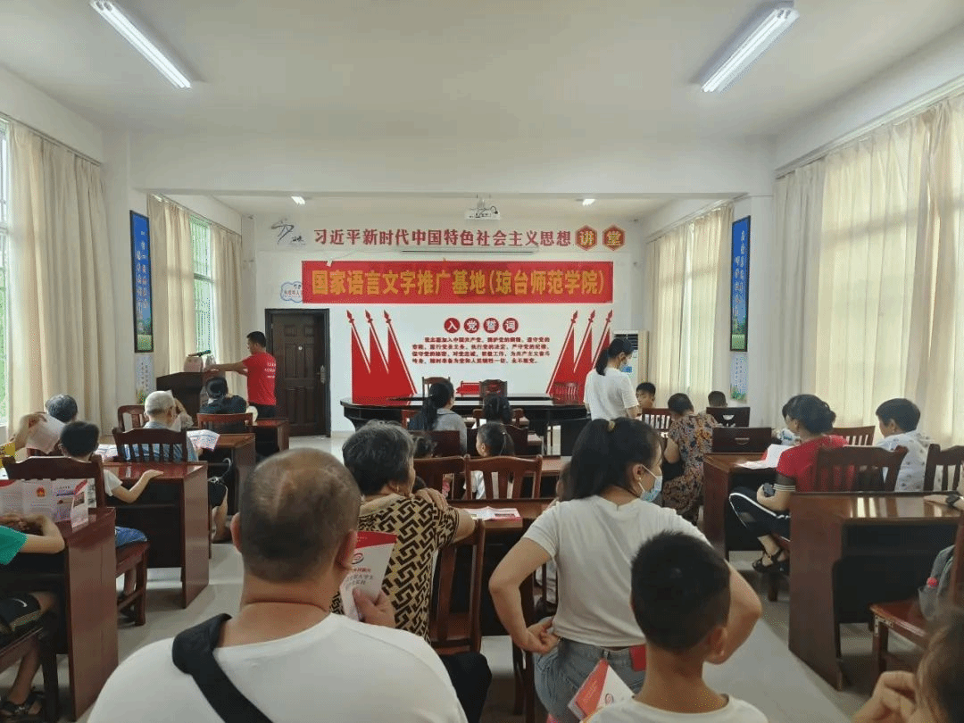 面对居委会干部,党员,居民讲述普通话知识和意义。宣讲后村民们热情地邀请我们给村里的孩子们上普通话课程,给予普通话普及活动充分肯定。