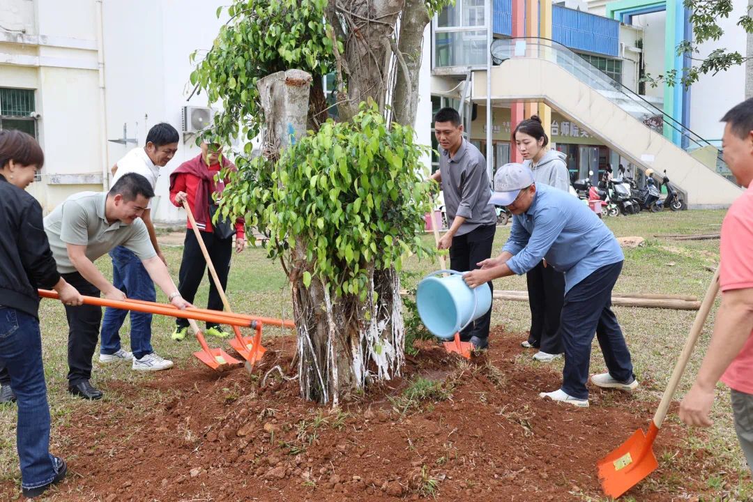 春光作序,万物和鸣。3月12日上午,我校校长刘湘洪,纪委书记杨智平,副校长林琛、王安兴、岳曼曼,组织部部长陈拥军在桂林洋校区学生食堂南侧绿地,与师生代表们共同参加植树活动,迎接第47个植树节的到来。