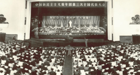1957年5月15日〜25日,中国新民主主义青年团第三次全国代表大会在北京召开。出席大会的正式代表1493名,列席代表70名,代表着全国92万个基层团组织和2300万团员。苏联、朝鲜、罗马尼亚、民主德国、意大利、日本、法国、英国等16个国家17个青年组织的代表应邀出席了大会。毛泽东、刘少奇、周恩来、朱德、陈云、邓小平等党和国家领导人出席了大会开幕式。中共中央总书记邓小平代表党中央向大会致祝词。他在祝词中指出: