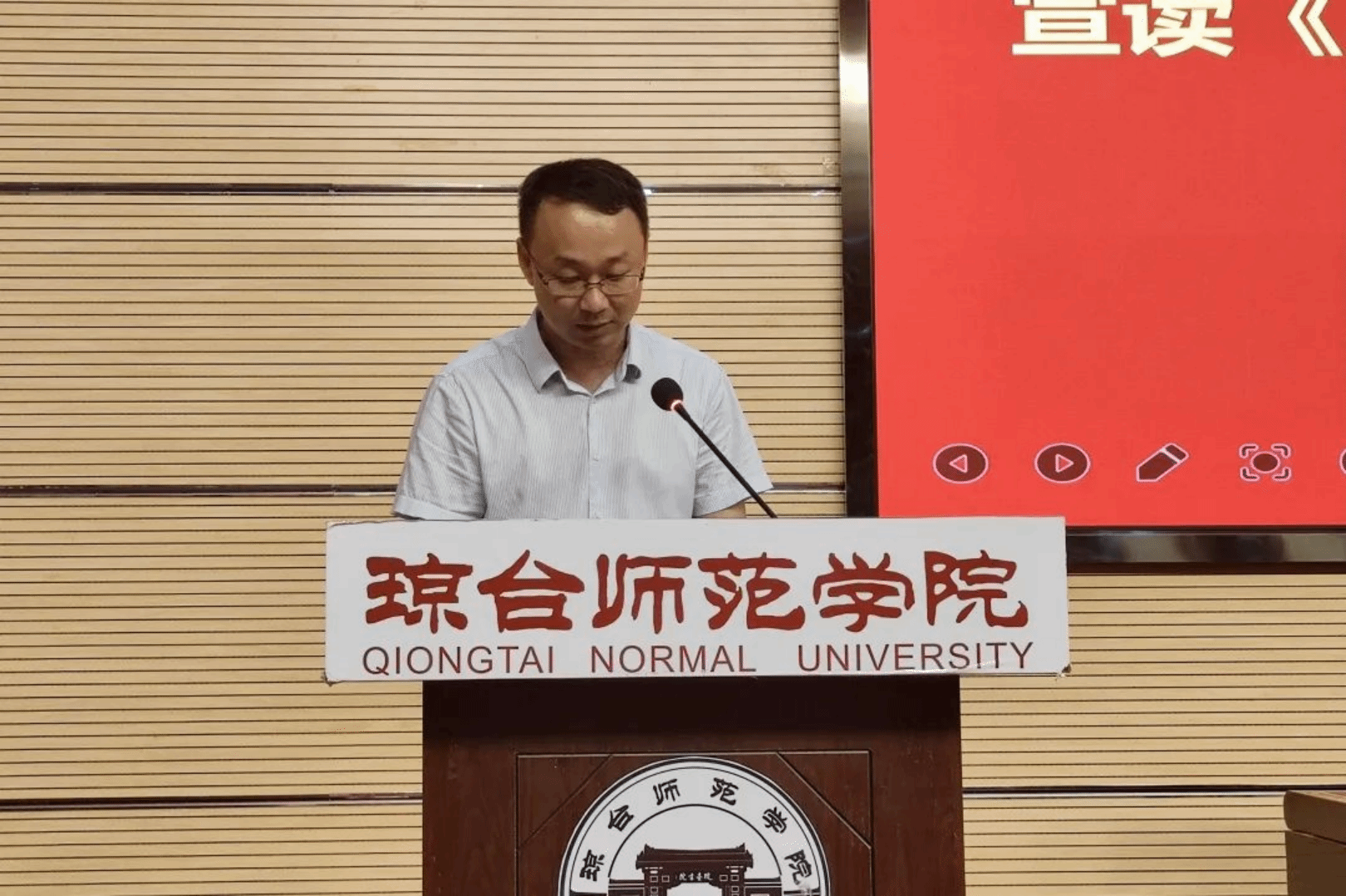 党委学生工作部部长柳善文宣读《关于2022年暑期文化科技卫生"三下乡"社会实践活动立项团队评审结果公示》文件