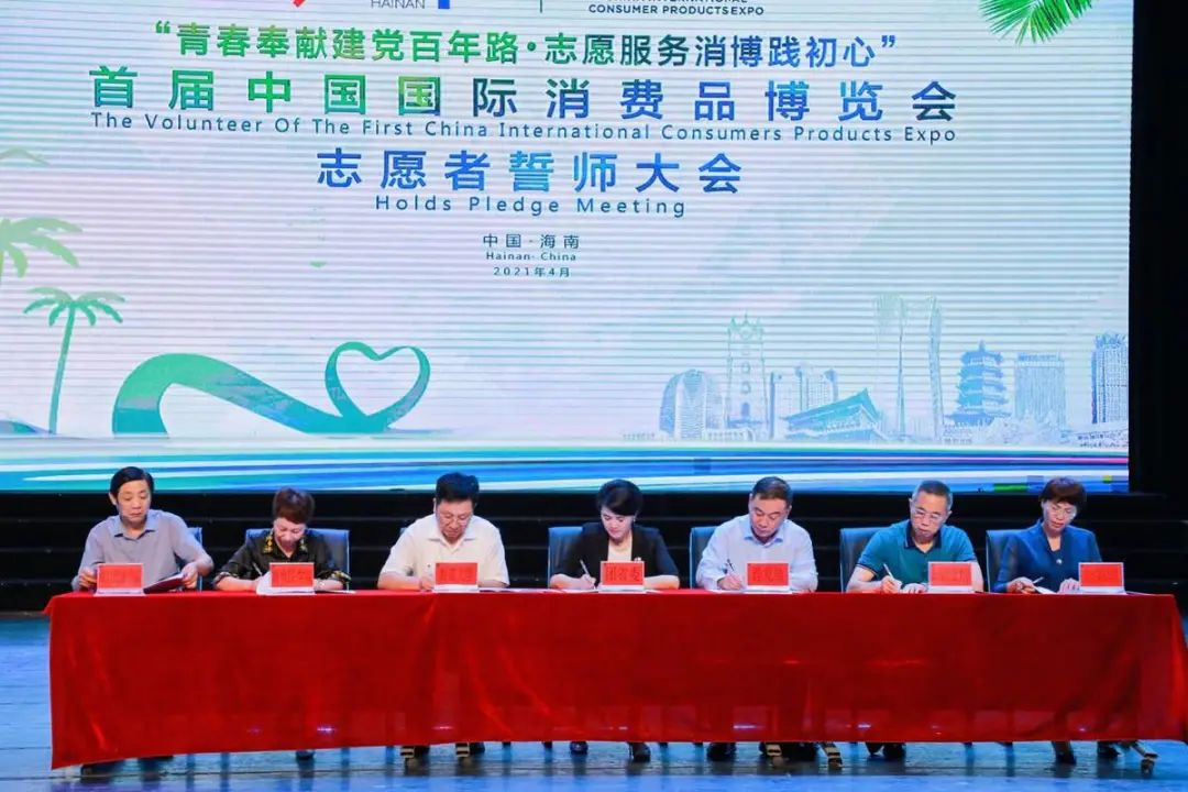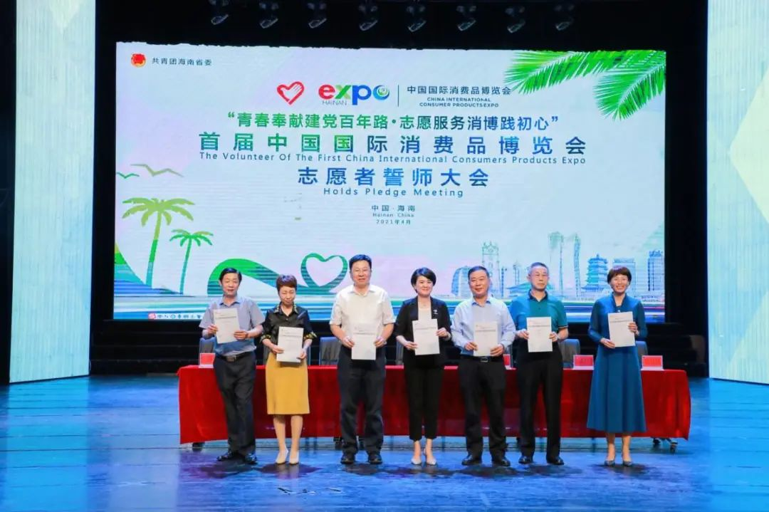 首届消博会全体志愿者进行集体宣誓,用真诚、响亮的青春之声庄严宣誓,传达了他们为消博会服务、奉献志愿服务事业的决心。我校参会志愿者表示将以积极的状态、饱满的热情投入消博会志愿服务,为祖国争光、为城市添彩。
