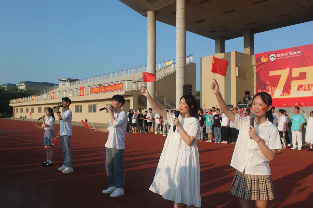 2021年10月1日全体师生在琼台师范学院桂林洋校区操场举行庄严的升旗仪式。蓝天下,琼台学子迎着晨光,带着希望为祖国母亲庆生。
